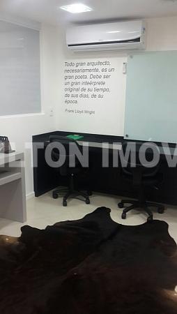 - Excelente Sala Comercial Equipada, Decorada e Mobiliada, Contendo no Piso Térreo: Recepção, 04 Escritórios Individuais, Cozinha e Banheiro; no Mezanino: 01 Ampla Sala de Reunião, 01 Escritório, 01 Sala de Espera, Santuário e Banheiro; com 06 Vagas de Garagens Privativas.
